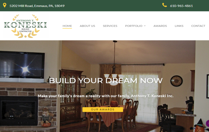 Our portfolio Lemon Tree Lane Kitchen - Visit Gaugler Contracting, LLC - Visit J Rad's Wood Fired Pizza - Visit American Pools Lehigh Valley - Visit Extreme Dance Studio - Visit Allentown Redevelopment Authority - Visit James Boburka Cinematography - Visit Downing Funeral Home - Visit Smiley's Lawn Care & Landscaping - Visit Heidel Hollow Farm - Visit Taylor Schaffer Construction - Visit Easton Suburban Water Authority Valleywide Electric - Visit DB & Associates Bleakley Financial Group Lehigh Valley - Visit B'Nai B'rith Apartments - Visit Catholic Medical Foundation - Visit Kerber Dog Training - Visit Real Deal Oil Company - Visit Anthony T. Koneski Renna's Landscaping - Visit Nazareth Industrial Corporation Grand Construction Management Keystone Plastics Equipment - Visit